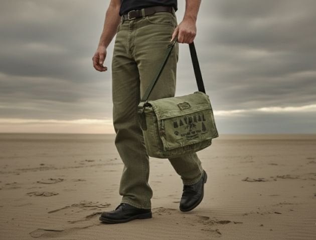 Cappadocia Vintage 4009 Ephesus Salaş Omuz Postacı Yeşil Haki Bej 14 inç Laptop Okul Seyahat Günlük Vintage Pamuk Çanta