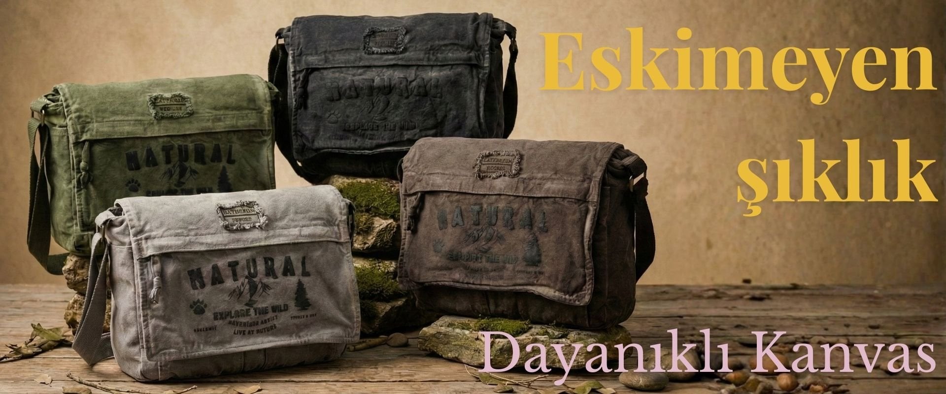 4046 Antiochia Omuz Postacı Suya Dayanıklı Mumlu Pamuk Kanvas Laptop Okul Evrak Seyahat Çantası